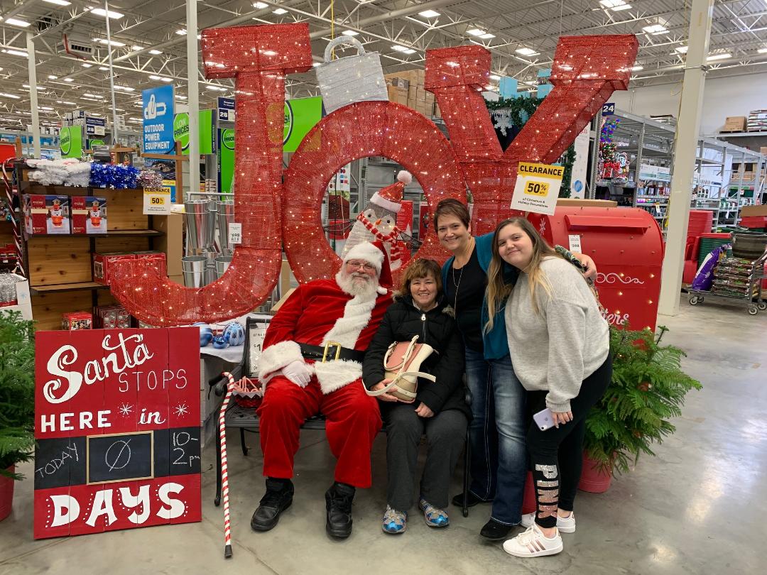That afternoon Kenzie, Cathy and I ran out to get some last minute gifts and wound up stopping at Lowe’s and low and behold, who should we see but Santa. Turns out my sister is a total fan girl! LOL.