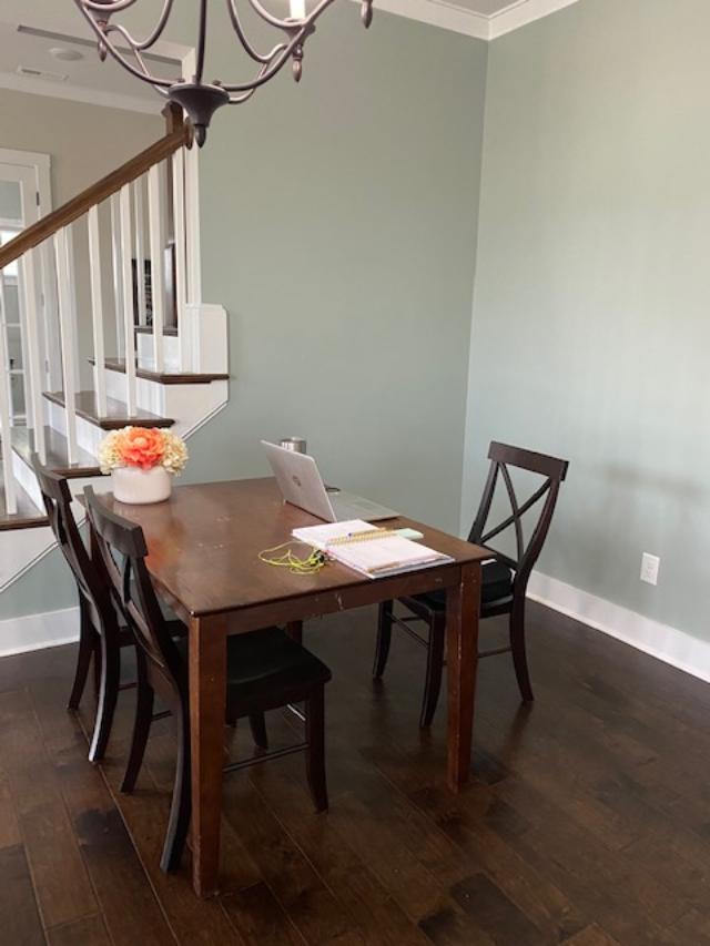When we moved into the house on Paddlers Cove Drive, I put the table in the dining room. More because I had no where else for it to go. Certainly not because it fit the space, but there it has sat for nearly two years. Empty. Until this morning. This morning I stood in the space of the dining room. I looked a the windows, the standard chandelier that came with the house. I admired my handiwork on the statement wall and soaked in the calm the color in that room brings to my heart, and in those moments I shifted. I shifted from being dismissive of my husband’s offer to feeling overwhelmed with gratefulness. Gratefulness that we have a home with such a space and that I have a husband who loves me and supports me enough to help me see my dreams come true and to gift me the space in the front of our house to pursue those dreams. Today I fully embraced my new creative space.
