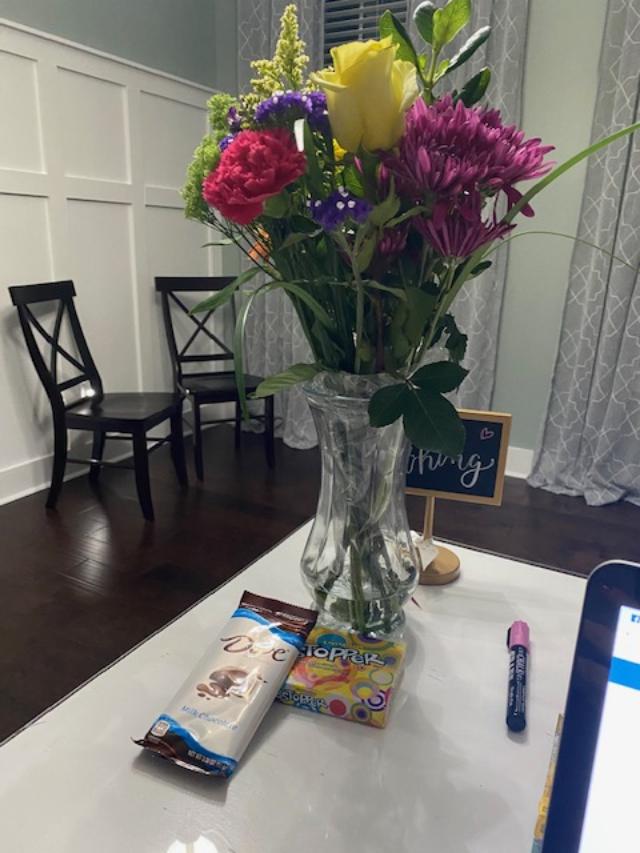 I woke this morning, early as always, made my coffee and in my half-awake stuper, made my way to my writing desk. It took me a moment to compute the lovely flowers, fun candies, card, and small box that was sitting on the corner of my writing desk. But once I did a smile broke across my face. I often tell people I don’t love surprsies, but truth be told, I really, really do. Especially sweet, thoughtful surprises from Frank.