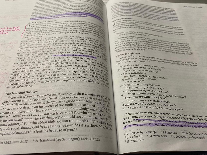 Currently, I’m digging back into Romans. I’ll be honest, there have been moments where I long for familiar wording; moments where I wish I could remember a former insight I had one of the other times I have read these very verses. But overall, I am happy for this new perspective on reading the Word.