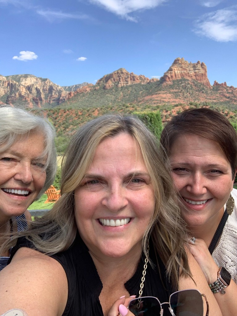 Monday – we visited my friend Rachel and she joined Becky and I for a trip to Sedona. A quaint little town about 1.5 hours out of central Phoenix and about 10 degrees cooler on average — not that it matters when that 10 degrees = 94 degrees. Still hot! We tooled around town, going in and out of shops and stopping for a nice lunch at Picasso’s. Fell off the Vegan train for parts of this trip — this day was day 1 as we enjoyed some baked Brie. It was as yummy as I remember, but was it worth it? Not really. It didn’t convince me that I’d rather return to the SAD diet, that’s for sure.